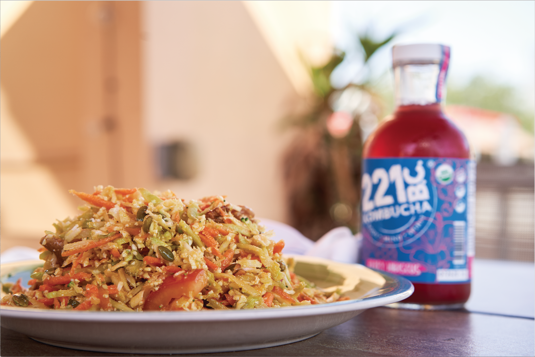 “We want our diners to have fresh and changing options, and to be able to take advantage of excellent ingredients when they are available,” explains Sheila. Going along with the revolving menu, Chef Mike’s rice plates, grilled cheeses, quesadillas, hearty soups and salads often highlight and rotate a variety of fresh veggies that are in season at that time. The Mandarin Peanut Salad with shredded cabbage, Mandarin oranges, red bell peppers, carrots and peanuts, in an oil-free coconut dressing, is Sheila’s personal favorite at the moment. “It is so savory and sweet and delicious,” she shares.