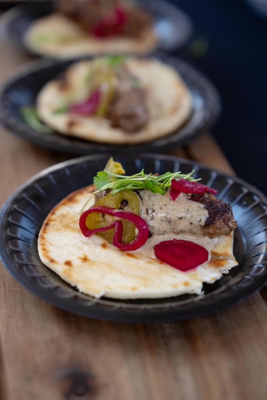Pictured: The grilled kofta presented by 1592, made with pita bread, tahini, pickled shallots, micro cialntro and pickled jalapenos. Photo by Wes Roberts.