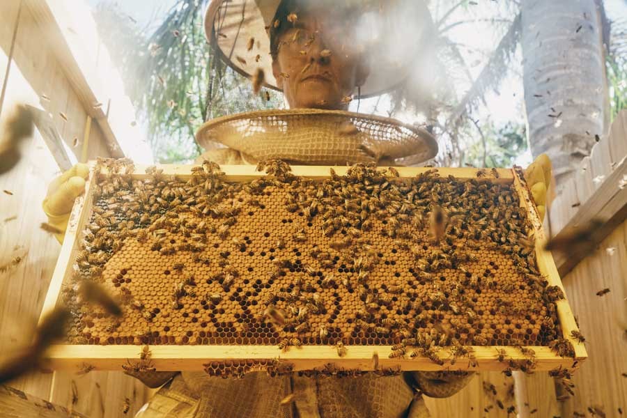 Now hailing a brand new location with a retail shop within its quaint yellow cottage, and a butterfly/hummingbird-filled garden in the backyard, curious bumblers can take free or private tours of Sarasota Honey Co.’s pollinator-friendly nursery for the real hive-five experience. “Visitors get up close and personal with the busy bees in action, while discussing beekeeping and harvesting in Florida along with the benefits of apiaries and their effect on agriculture,” says co-owner Alma Johnson. You’ll see firsthand how Sarasota Honey ensures the humming drones thrive on the hive healthily and happily so they can engineer that coveted 100% local, natural artisan honey made through an organic practice and holistic process known as “cold-blade”—making its honey arguably vegan—with little-to-no harm to the bees, as opposed to typical commercial harvesting operations that manufacture with machines and a chemical called Bee-Go—burning off the top layer of the honey and killing most of the bees. “It’s not warm and fuzzy. But what it takes all day for us to do; they can in only an hour,” explains Johnson. “It’s better time management on their part, but the bees and taste are compromised from scorching and pasteurizing the top-layer of honey.”
