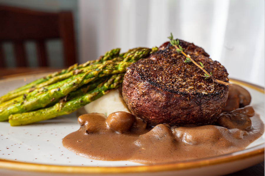 But it’s not all fish feasts at The Porch. Cattle ranching in what would become the continental U.S. began in Florida with the arrival of Spanish conquistador Hernando de Soto, who is believed to have landed somewhere near the mouth of the Manatee River in the 16th century. So, there is, in fact, something undeniably Floridian about The Porch’s USDA prime steak offerings. An 18-ounce ribeye will challenge the hungriest of homesteaders, but the filet mignon is a tasty little beef cupcake. Seasoned with salt, pepper and a touch of garlic, the outer sear adds a touch of crispiness to a cut cooked perfectly medium-rare. A traditional accompaniment of mashed potatoes and roasted asparagus make this an easy pick for the picky eater.