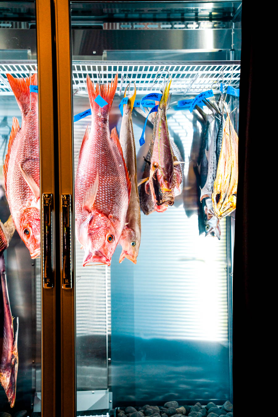 The new restaurant on Hillview—co-owned by Washington D.C. transplants Chef Adams and longtime friend/associate Bruce Pike—brings an extraordinary level of artistry into the flavor profile and presentation of their New American tapas-style menu, a tweezer-wielding approach to perfection that is as playfully obfuscated by the unassuming verbiage of the menu as the understated décor. Inside, a simple palette of dark blue and minimalist fixtures, with here and there an accent color or framed illustrations of fishes, serves as a comfortable but unobtrusive backdrop for an ambitious body of work.