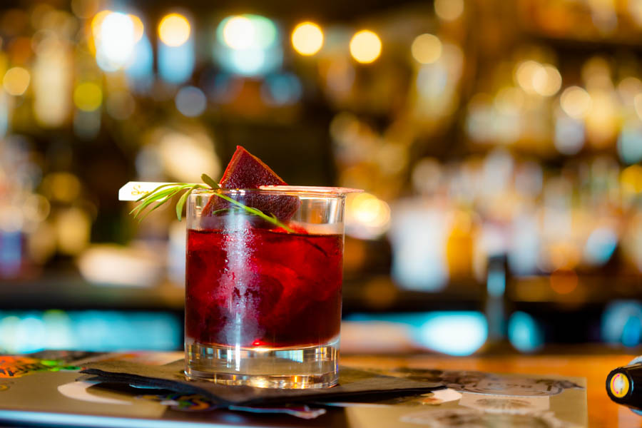 SRQ Magazine was invited to observe part of the creative process as she collaborated with her bar staff, using renowned chef Christopher Covelli’s fall menu for inspiration, to create a fall cocktail menu. Sage and Bijou close for three weeks every year in September, giving the restaurant staff an opportunity to refine their recipes and processes. Covelli travels, gaining culinary inspiration, and as soon as the seasonal menu is set Padilla-Flores gets to work in her lab, which just happens to double as the stylish Sage bar. It’s a lovely, welcoming bar with heavy stools, and adorned with a signature convex mirror in the middle. It all works together to create a speakeasy feel in this historic building that dates back to 1926 and once housed the Sarasota Times. Seeking to demonstrate how an original cocktail comes to life, Padilla-Flores walked through each step of the process. The result was a beet-infused mezcal cocktail with tarragon syrup, walnut liqueur, and saline solution. Its deep red hues are as bold and daring as its flavor.