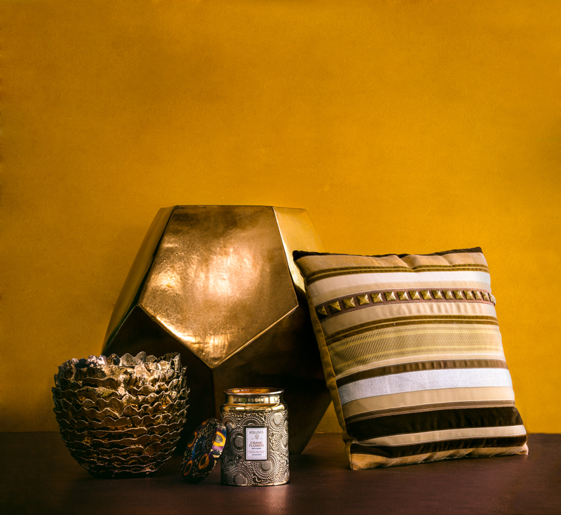 Chasen Reed: 1.Rigged Bronze built in layers of sculpted waves serves as a focal centerpiece. Bronze planter, $89. 1425 1st Street, Sarasota, 941-363-7975. Black Bird Home Gallery: 2.Cole Dodecahedrom Stool in gold crackle as designed by Made Goods. A geometric shape and mirrored metal surface build a bold and functional furnishing. $625. 1540 Main Street, Sarasota, 941-366-0941. Lotus: 3.The Valuspa Bronze Canned Candle burns 100 hours of a crane flower scent and spreads warmth through a room. $72. 1451 Main Street, Sarasota, 941-906-7080. Black Bird Home Gallery: 4.Collage Baguette Pillow in khaki by Dransfield and Ross New York. Metallic textures and bronze embellishments hinge luxury with cozy warmth. $364. 5. Golden glass by Marc Blackball New York, hand-painted with a rim of bronze. $60 each. 1540 Main Street, Sarasota, 941-366-0941. Mercantile Home and Apparel: 6. Dessert forks formed from solid brass with polished heads and svelte blackened handles. Set of four, $70. 7.Dessert/Salad Plate fired with a dulled metallic glaze. $35 each.8.Serving Spoons of hand-forged stainless steel. Copper-plated handles are detailed with an intricate leaf design. $65 set. 1463 Main Street, Sarasota, 941-366-2457. 9.Smooth glass displays a scope of textured and glittering bronze. Large bowl, $499.