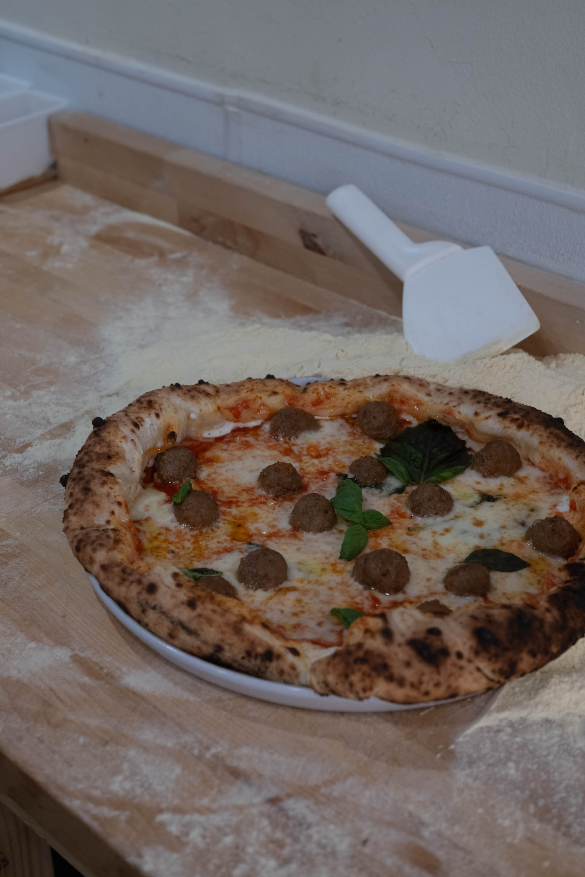 One of Di Iorio’s more unique and best-selling creations is the polpettina. The tender, yet sturdy dough supports a base layer of tomato sauce, followed by layers of milky mozzarella and Parmigiano Reggiano, an assortment of succulent meatballs and a mouth-watering ricotta-stuffed crust.