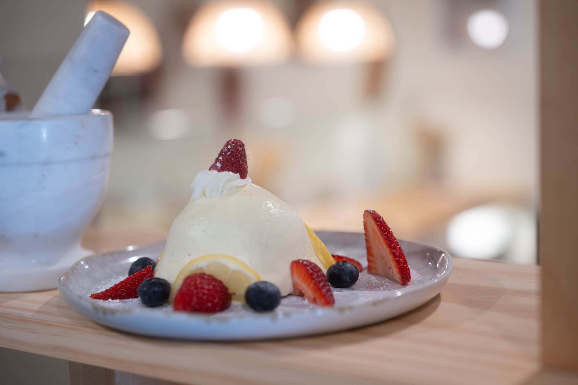 Di Iorio’s taste of home continues into the dessert menu, which includes the delizia al limone, a lemon-essence sponge cake that hails from the Campania region of Italy. The sponge cake—as moist a cake as one is bound to find anywhere—is filled with a delightful lemon cream and topped with a sweet, lemon glaze.