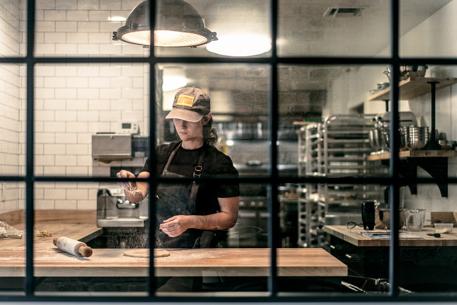 “Make Cornbread Not War,” read the weather-worn baseball caps atop the heads of brother-sister team Jamie and Crystle Otto as they knead and roll in a cumulus cloud of flour, in fits and starts the dough shaping into soon-to-be pies, buns and, most importantly, biscuits. All the while, Kathy Otto mans the slick wood counter at Buttermilk Handcrafted Food, siphoning Perq cold brew and nitro coffees from a three-pronged tap, doling out sweet rolls with cold brew caramel frosting, savory rolls with black forest ham and sharp cheddar, vanilla oatmeal pie, mocha and salted chocolate chip cookies and spicy Mexican hot chocolate truffles. Between the three Ottos, the little Buttermilk bakery lives rapt in farmhouse purity, with a tangible spirit of the Deep South.