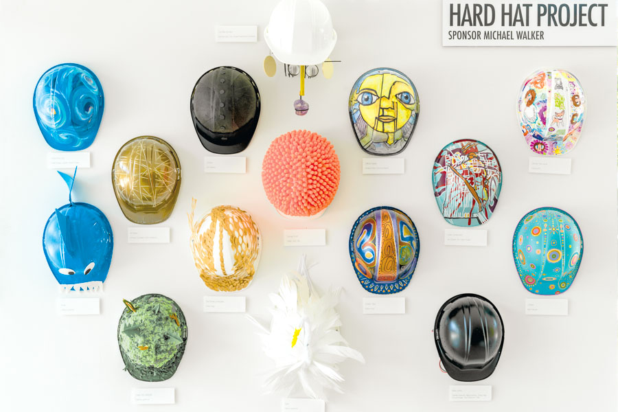 Inside the Center for Architecture itself, the festivities continue. Modern art lines the walls and modern furniture populates the gallery as a special exhibition for the event makes its debut—a collection of hard hats designed and decorated by local artists and architects, including members of CityLab Sarasota, a master of architecture program created in partnership with the University of Florida.