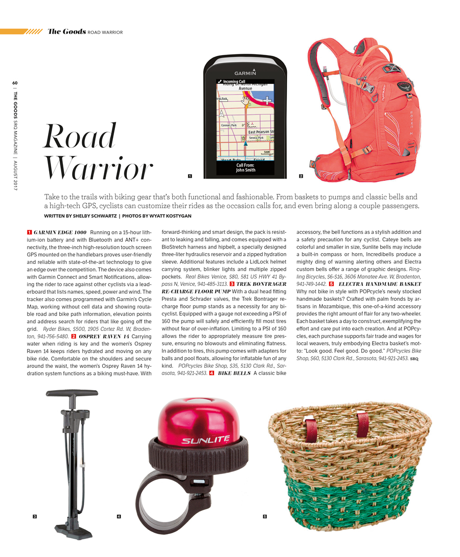 Take to the trails with biking gear that’s both functional and fashionable. From baskets to pumps and classic bells and a high-tech GPS, cyclists can customize their rides as the occasion calls for, and even bring along a couple passengers.
