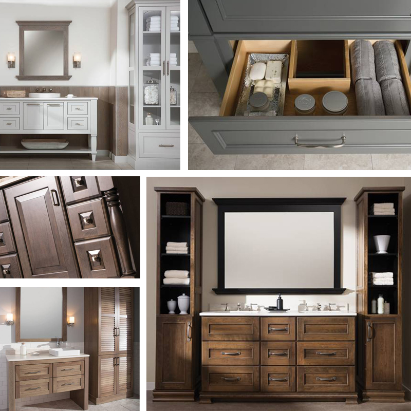 Create an entire collection of coordinated bath cabinetry with Dura Supreme’s new bath furniture program. With six unique styles to choose from, each with coordinating linen cabinets and mirrors, your design can be personalized with any number of door style, wood species and finish options, and custom sized to fit your space perfectly.