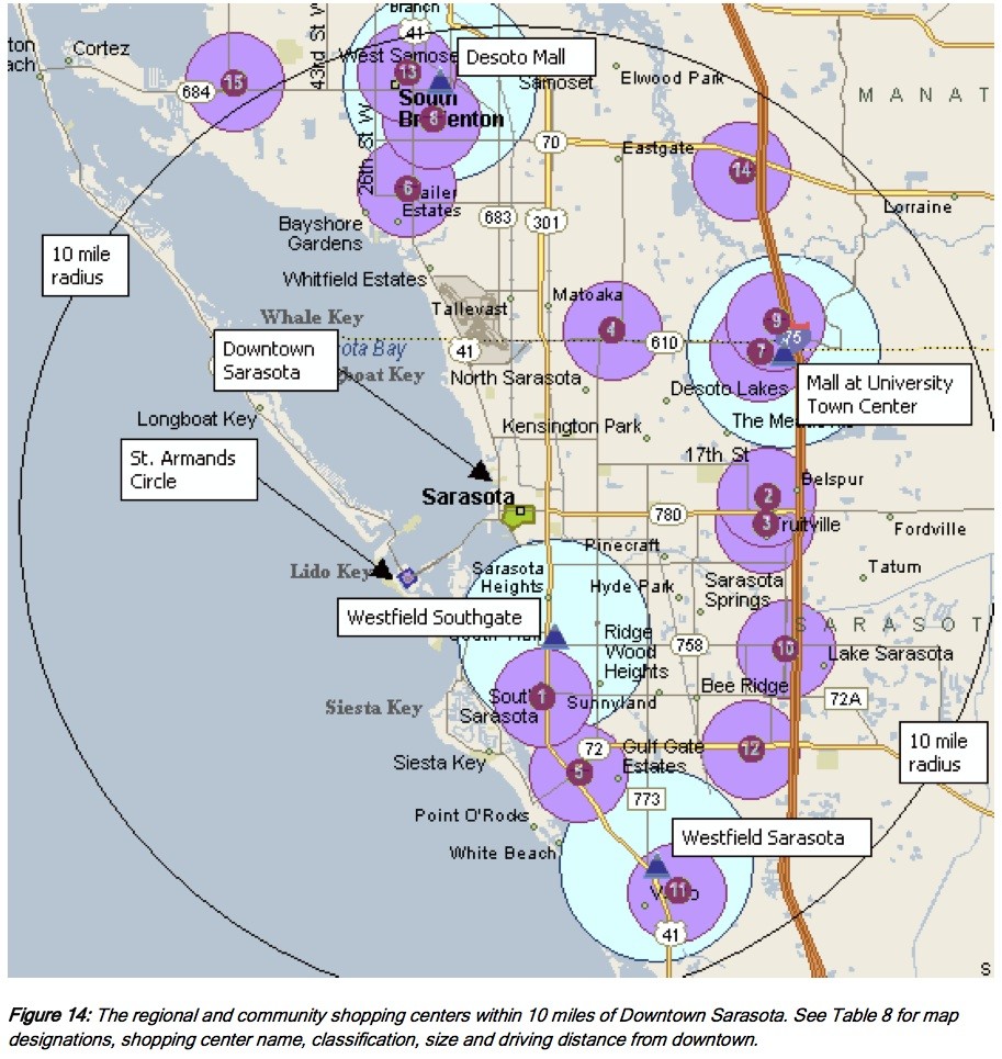 Of course, the mall will impact the region, and there will be some pains for existing retailers. The simple novelty of a new mall will attract many existing customers at Sarasota retailers to gravitate toward University Parkway short-term, and there will be a downturn that can last as long as a year. "You will lose some retailers who will move there, and you may have some businesses close," he said. "But we think fairly conservatively it's still a healthy market." The existing retail centers will still be able to draw loyal customers from its prime geographic market, and the Gibbs studies showed more than 70 percent of customers still come from areas within a short drive of the centers.