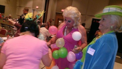 The three community leaders emerged decked from head to toe with balloons pinned to their outfits, mingling and posing for photographs while residents paid $10 each for the opportunity to pop a balloon, further exposing the wearer’s outfit and claiming a prize.