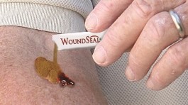 "The benefit is it will not only stop the bleeding but will seal those wounds," said Andrew McFall, vice president of marketing for Biolife. "Bandages can cover a wound but they don't really stop the bleeding." After after the artificial scab is created by proteins interacting with the substance, a true scab will form underneath the Woundseal and then come off the patient naturally when the bleeding is no longer a problem.