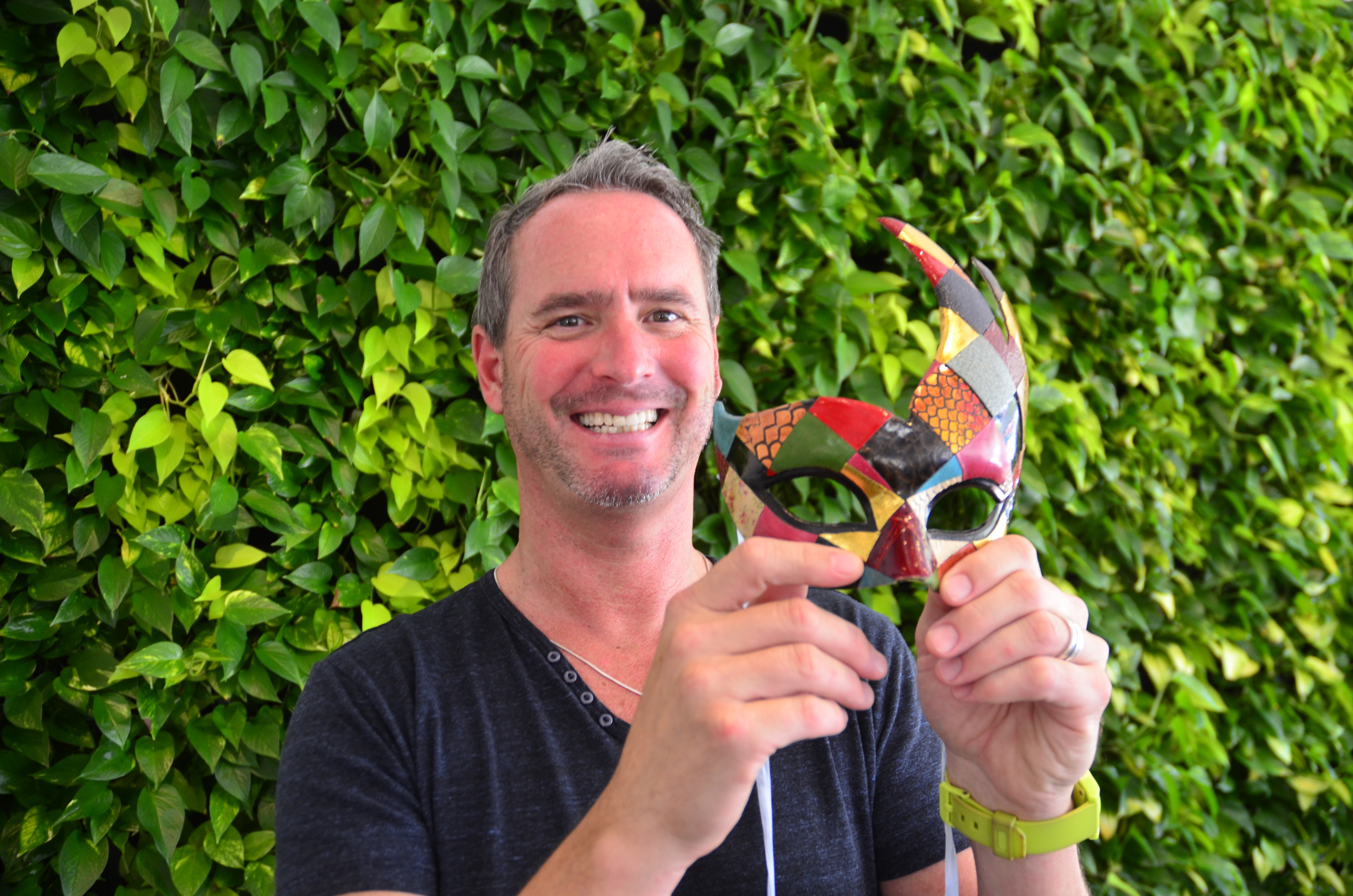 Congratulations to Chris Thorpe, the winner of the SRQ Bal Masque Venetian Mask Contest! SRQ President and CEO, Lisl Liang fell in love with the gorgeous artisan-crafted creation a recent trip to Venizia, Italy while she was roaming the canals near the Rialto bridgeand and brought the authentic carnivale accessory brought back to SRQ for Bal Masque. Chris was thrilled with his win and stopped by the SRQ offices for an impromptu photo shoot commenting, "I love Italy and have long wanted to attend Carnivale. The combination of colors in this mask is very unusual and the workmanship is incredible. It is even signed on the inside by the artist. I look forward to wearing it at the SRQ Bal Masque event this Saturday - it will be the next best thing to actually being in Venice. George Clooney has nothing on this!” Don't the magic of Italy at tonight’s SRQ Bal Masque.