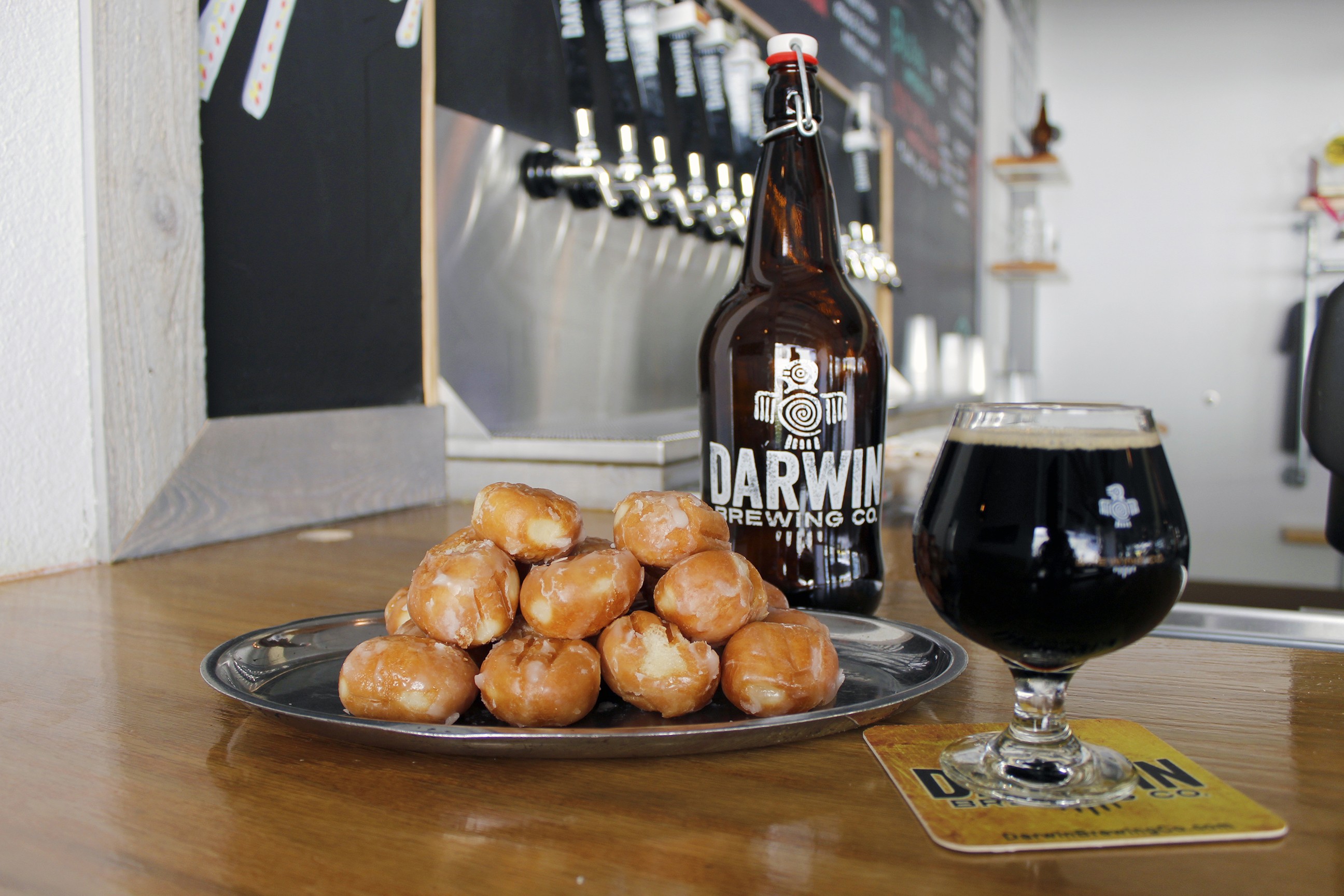 Darwin Brewing Company, Turner’s Donuts and Perq Coffee Bar have formed a unique partnership at the Bradenton Farmers’ Market. Darwin brewer, Leslie Shore, has created a new breakfast stout in collaboration with Perq Coffee Bar and Turner’s Donut. The stout will feature coffee beans from Perq and the famous Turner donut holes in the fermentation process. The stout was limitedly released for tastings in the Darwin Brewing Co. taproom but will be back again this spring and represents the best of creative collaborations. Come chat with the brewers from Darwin and beat the wait for the second release with free samples of the brew along with donuts from Turner’s at the downtown Bradenton Farmers’ Market from 10am-1pm today.