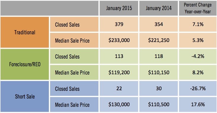 In addition to seeing a 2.4 percent boost in closed sales in the Sarasota market for single-family homes, the Realtors Association of Sarasota and Manatee reported that the percentage of foreclosure homes and short sales declined substantially in January as compared to the same month in 2014. Additionally, those homes that were sold through forclosures or short sales had a higher median sales price,