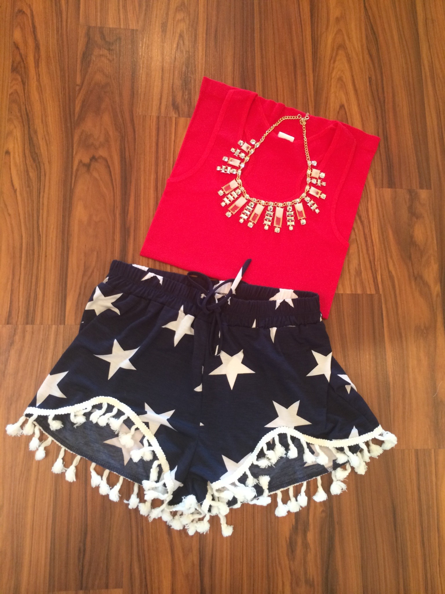 This is the weekend for Red, White and Blue, and luckily D-Luxe Boutique has all you need to get by. These star shorts with a red tank are a perfect pair to help celebrate the holiday, and the light weight makes them practical for every outdoor festivity you have planned. The shop, located in the Historic Downtown Village, also has a collection of breezy white dresses and tops for a classic and clean look you can wear throughout the season. Pair with a necklace for some sparkle and your all-American look will shine.