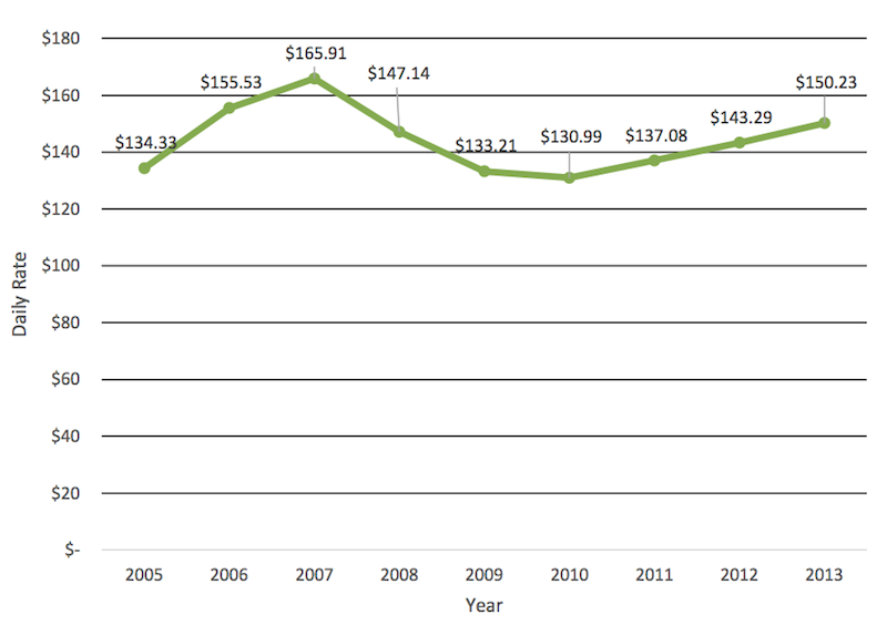 Data on average hotel and motel daily rates per year shows that rates in Sarasota County have increased steadily since 2010. State figures indicate a rising number of people visiting the state each year.