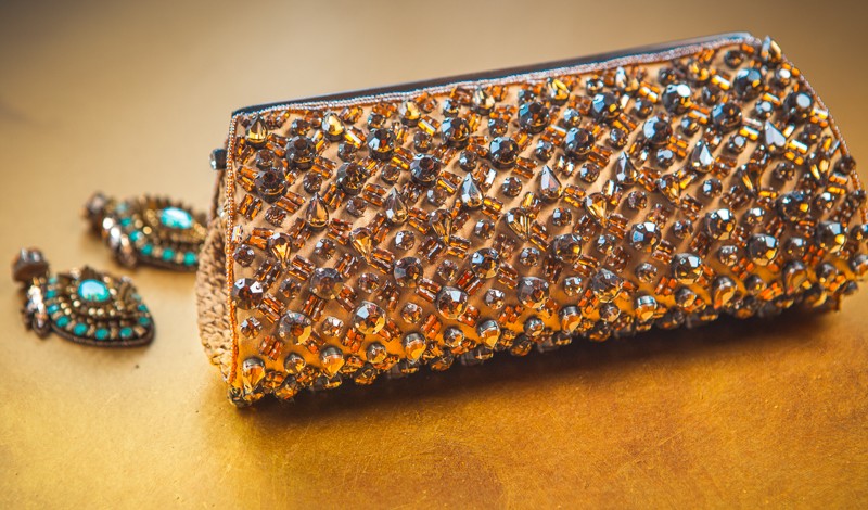 The deep brown silk of this Moyna Couture clutch is burnished with large rust stones and bronza gems. $568. As featured in the October 2015 edition of SRQ | The Magazine. For more bronze warmth, check out the Catch section in the October issue of SRQ: The Magazine.