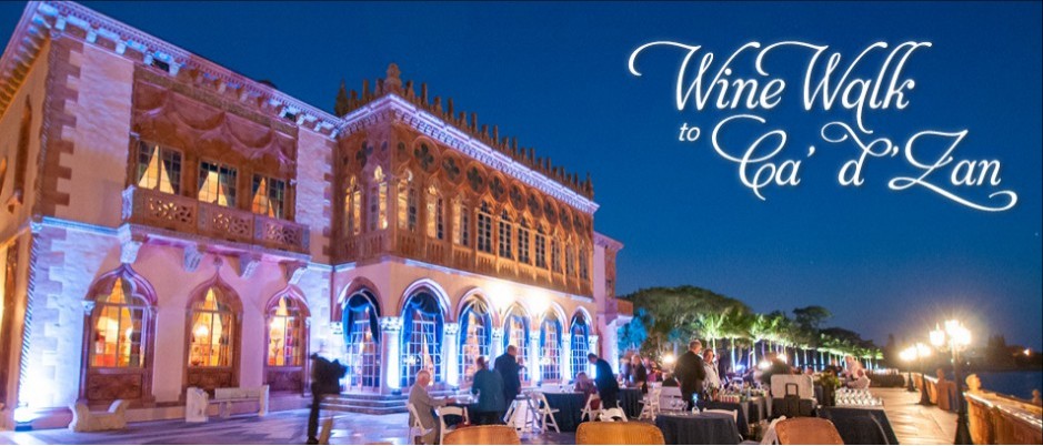 Experience the fourth annual Wine Walk to Ca’ d’Zan on Friday, April 1, 6-10PM. Taste fine wine and delight in delicious food pairings as you stroll along the drive to the mansion. Wrap up the evening beside Ca' d'Zan with live music and surprises. As part of the festivities purchase one of only 150 chance drawing tickets sold and you could win dinner on Ca' d'Zan Terrace for up to four people on the terrace of Ca' d'Zan, including a private tour of the mansion. Overlooking Sarasota Bay, the terrace is filled with stunning architectural details and provides an unparalleled panoramic view. Dinner and wine will be provided by Muse at The Ringling. This experience is valued at $4,500. Tickets for both the Wine Walk and the Chance Drawing are available online at the link below or by calling 941-358-3180. The drawing will be held on Friday, April 1 at 9:45 pm at the Wine Walk to Ca' d'Zan event .