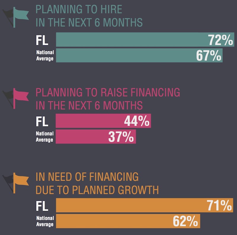 A higher percentage of Florida businesses are in need of financing for planned growth than in any state of the union besides North Carolina, according to a new study released in March by Dunn & Bradstreet and Pepperdine University. But while the study found more businesses here are optimistic for growth than in other states, 71 percent of Florida small businesses feel the current business environment is restricting growth opportunities, compared to 58 percent of the national average.