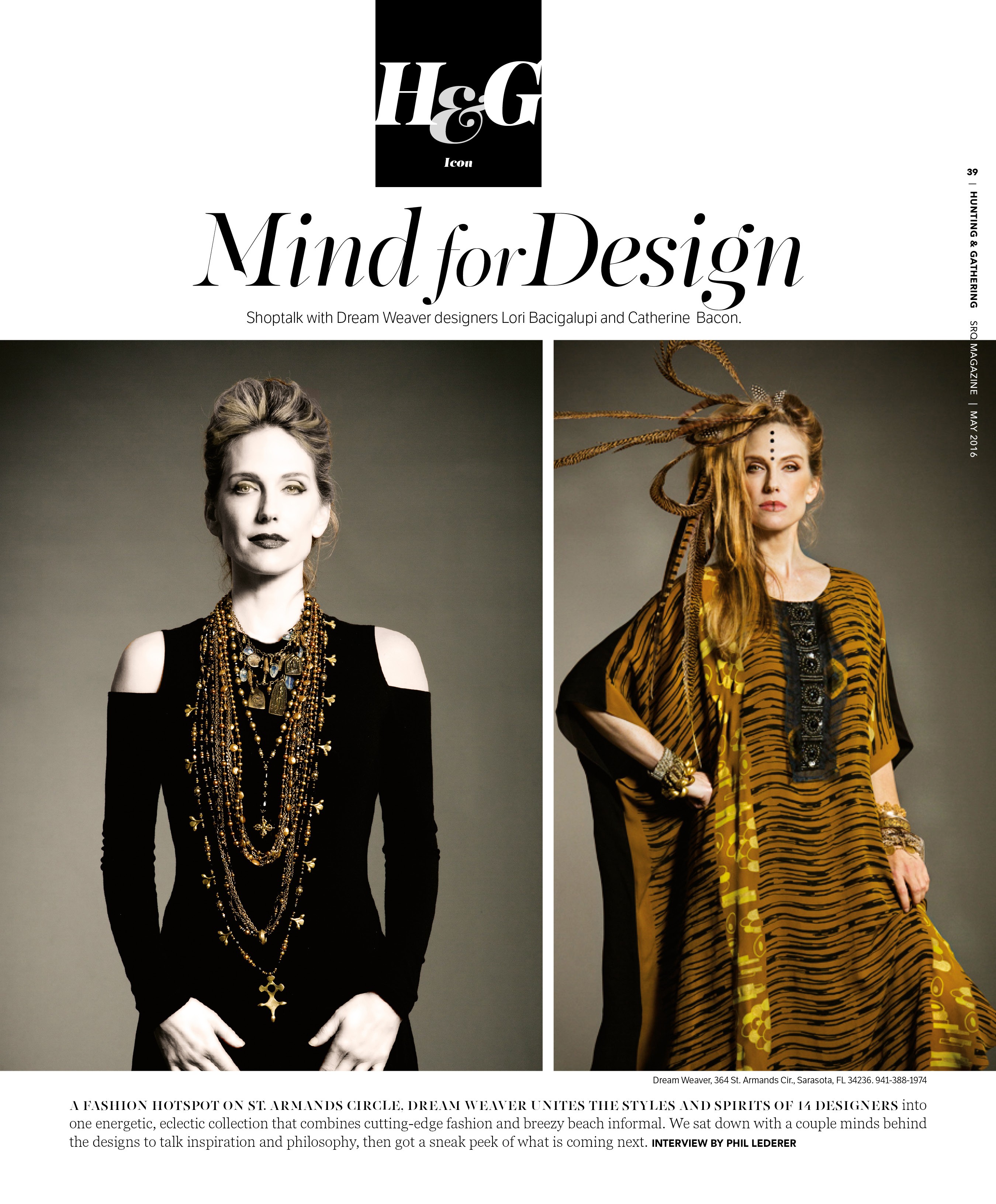 This month, SRQ sits down with Catherine Bacon and Lori Bacigalupi, two designers whose clothes line the racks at Dream Weaver—Sarasota’s sartorial destination for eclectic, opulent finds—in Mind for Design. Bacon, whose eponymous line focuses on drapey silk garments, aims to create artful, timeless pieces. Bacigalupi’s emphasis on natural-fiber fabrics and painterly design makes her outfits essential wardrobe staples. A taste of what’s next: indigo-dyed garments, bold graphic prints, batik and shibori.