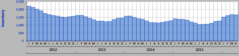 Condo and townhouse inventory in Sarasota County for April was up 25.5 percent from the previous year, as shown by the graph above, according to the Realtor Association of Sarasota and Manatee. Inventory was up by 19.8 percent in Manatee County. But both counties are increasingly seller’s markets, with Sarasota having just a 4.4 month supply of condo and townhouse units based on demand and Manatee having just a 4.5-month supply.