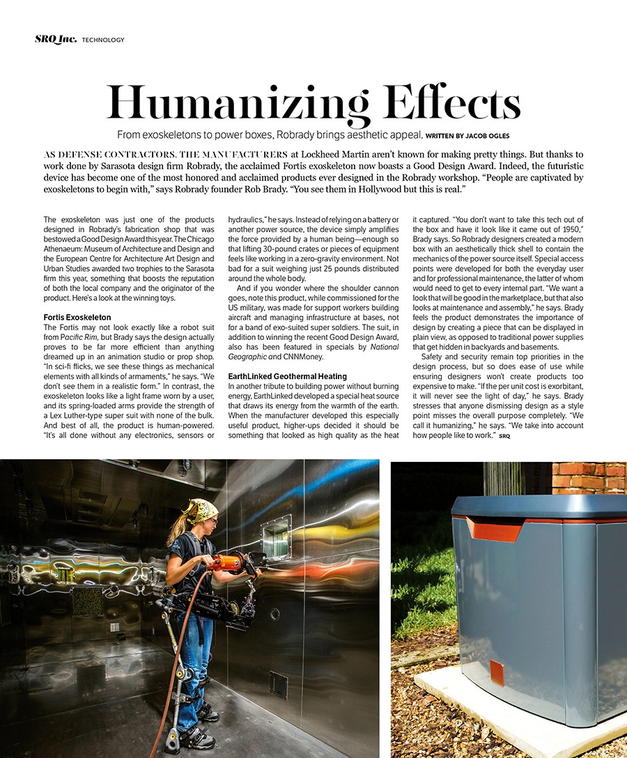 Exoskeletons are no longer limited to insects and Iron Man. This month, in Humanizing Effects we take you inside the workshop of local product design firm Robrady to give you a firsthand look at their award-winning innovations. Originally commissioned for the US military, the FORTIS exoskeleton’s lightweight frame and energy efficiency earned it two Good Design awards. If you think that this exo-suit is as high-tech as they come, you’d be wrong: FORTIS is entirely human powered (nixing the need to charge or replace batteries) and doesn’t require space-age extras in order complete complex jobs, like building an aircraft.