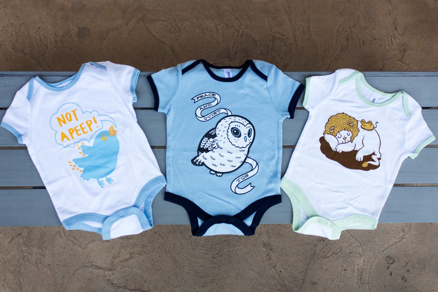 Pictured: These Quiet Sounds' onesie collection. Photo by Heidi Stone
