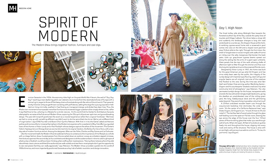 This month, in Spirit of Modern we give you a front-row seat to the Center for Architecture Sarasota’s inaugural Modern Show. Held over two days in May, the Modern Show highlighted Sarasota’s legacy as an arbiter of modern design with tours of never-before open to the public homes by architectural greats Paul Rudolph and Victor Lundy, a vintage fashion show featuring timeless ‘50s garb, lectures by Modernism experts and a furniture sale allowing showgoers to take home an Eames or Le Corbusier. The groundbreaking event, a first for CFAS (but not the last) proved that the Modernist movement isn’t just about architecture and design—it’s a way of life.