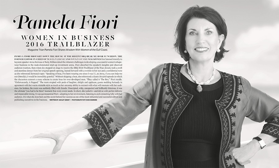Pamela Fiori, winner of SRQ’s 2016 Trailblazer of the Year award for her pioneering accomplishments in the magazine industry and speaker at this year’s Women in Business luncheon is more than just the beautiful face on July’s second cover. This month, the SRQ flipside provides a rare, intimate interview with the woman who broke down barriers in the once “good old boy” world of New York magazine publishing. The former editor-in-chief of Travel & Leisure and Town & Country magazines—whose career success eventually led to her appointment helmswoman of American Express Publishing—advises ambitious Gulf Coast women to embrace change, approach leadership roles with compassion and hold steadfast to their values. “If you don’t stand for something,” she says, “you will fall for anything.”
