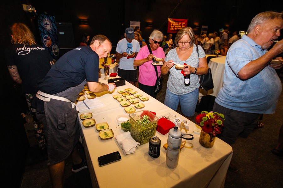 This year’s derby—a joint effort between Mote and the Reef Environmental Education Foundation (REEF)—offered up invasive species management and community education to over 300 attendees with a delectable twist: lionfish dishes prepared by gourmet chefs from Sarasota’s top restaurants. After attending last year’s derby, Steve Phelps—owner and executive chef of Indigenous—called upon his friends in the restaurant industry to contribute their culinary talents to this year’s event.