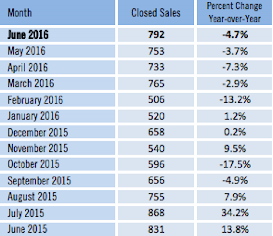 Seen as one of the simplest yet most important indicators for the residential real estate market, closed sales are the number of sales transactions wthat closed during the month. Florida Realtors provides information on closed sales for the past year. As seen on the chart above, closed sales for this past month on June were 792. Closed sales are affected by seasonal cycles, so actual trends are more accurately represented by year-over-year changes rather than changes from one month to the next.