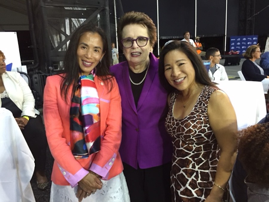 On a recent business trip to New York, Lee-En Chung, SRQ Women in Business Leadership Circle member and founder of Sarasota-based Ivy Ventures, Inc., visited the historic West Side Tennis Club in Forest Hills, NY as a spectator of World Team Tennis. While there, Lee-En met USTA Chair, CEO and President, Katrina Adams and tennis phenomenon Billie Jean King, who coincidentally won all of her US Open matches at Forest Hills.