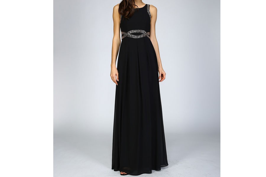 Looking for something to wear to the annual SRQ Good Gala on October 8? Up the wow-factor and turn heads as you make your entrance in this Grecian goddess-style stunner from Minuet. Glide down the steps of the Sarasota Opera House and mingle with other philanthropy enthusiasts, the rhinestone and bugle beading detail glimmering in the evening light and the inverted pleated skirt flowing weightlessly around your ankles. The tie back ensures the most flattering waistline and the satin underskirt protects from unwanted see-through faux pas. With a high neckline and a mildly plunging back, the midnight-black dress (conveniently located at i tesori boutique on 1st Street) brings out your best, no matter what age or size, and will effortlessly guide you through the gala season.