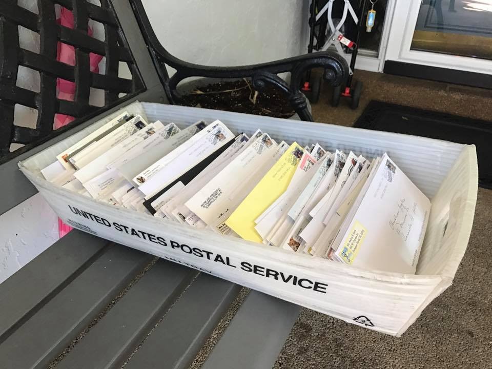 Photo courtesy Christian Ziegler: A bin of letters petitioning Ziegler to vote against Donald Trump at the electoral college vote today.