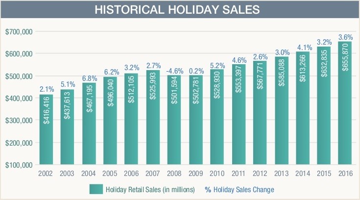 The Florida Retail Federation expects a higher increase in the Sunshine State, about 4 percent. National holiday sales this year are expected to increase 3.6 percent over 2015, according to a consumer survey released by the National Retail Federation. Holiday shopping in the survey is defined as that occurring in the months of November and December.