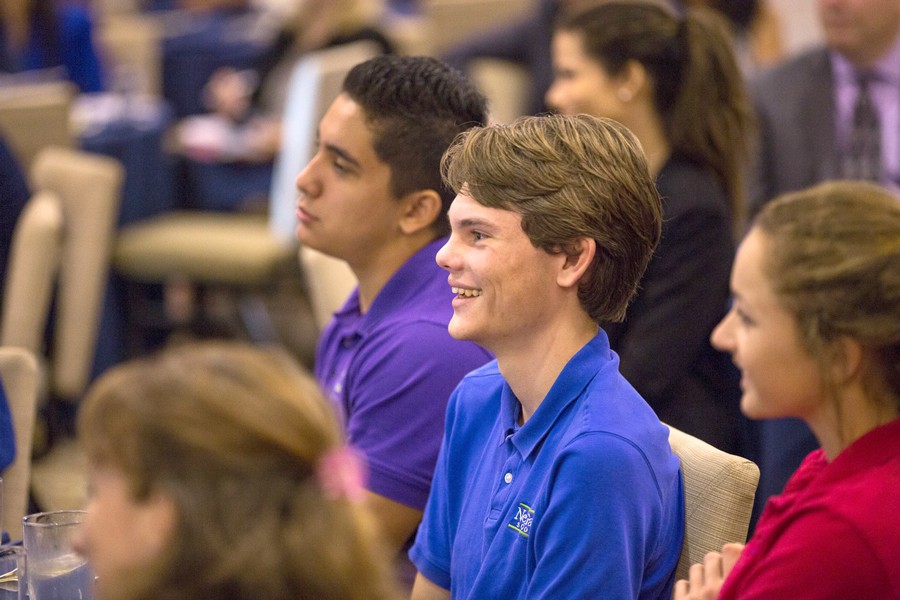 Photos by Wyatt Kostygan. Above: Newgate School's Ben Bogard attends SB2. Top: Mireya Eavey, Jennifer Vigne, SRQ's Wes Roberts, Larry Thompson and Mary Chance.