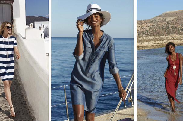 Spring has has sprung in the Bahamas—so why not embrace the island life here in Sarasota? Tommy Bahama welcomes spring 2017 with an array of new dresses that are perfect for a tropical weekend getaway or simply strolling through St. Armands—because (as the locals like to say) we live where you vacation. Set sail—or dream about it in the nautical navy Thera Stripe T-Shirt Dress. Travelor stay put in the trendy yet practical Chambray All Day Shirt Dress. And at the end of a long workweek, slip into the stunning, comfortable and completely wrinkle resistant Tambour Tank Maxi Dress.
