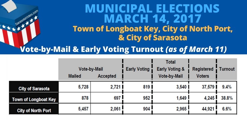 Polls will be open Tuesday on Longboat Key from 7am to 7pm. Commission elections will be held in Sarasota and North Port the same day.