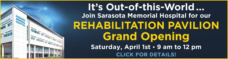 Sarasota Memorial is launching its new Rehabilitation Pavilion at an “Out of this World”-themed grand opening celebration this Saturday. Nearly three years in the making, the new 74,000-square-foot, five-story pavilion features the latest technology and treatments for patients rehabilitating from serious injuries and conditions. The event features demonstrations of the latest integrated therapy systems, including a robotic exoskeleton, and continuous tours of the pavilion’s patient rooms and therapy areas. The facility features state-of-the-art gymnasiums and life skills retraining areas that include, among other things, a furnished apartment, grocery store shelves, restaurant booth and mock car where patients practice the routine acts of daily living, and an outdoor mobility garden where patients can practice using a walker, wheelchair or other mobility aids as they navigate up inclines, down ramps and on different surfaces. They also can practice getting mail from the mailbox, using a garden hose or trying their hand at the putting green.