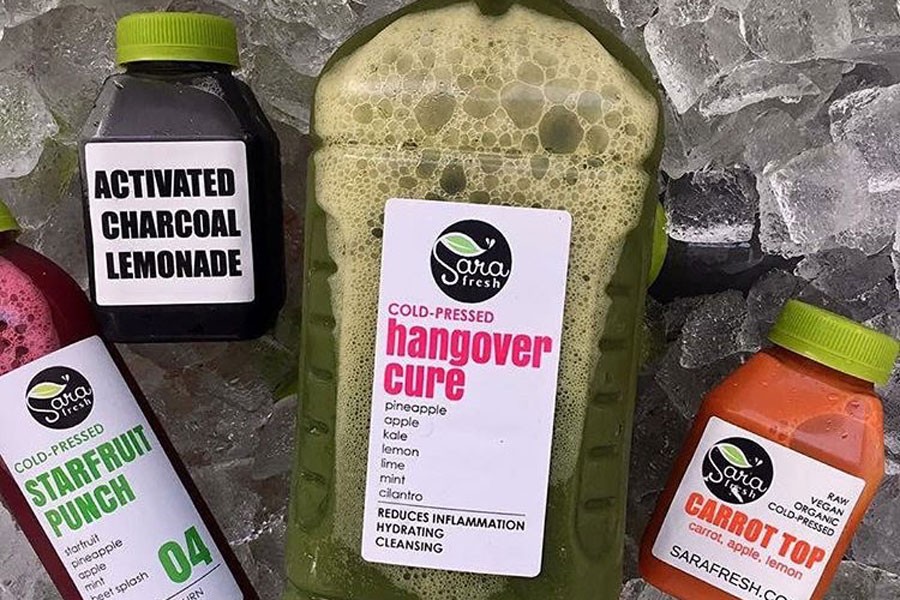 Had maybe a few too many bites of that beer cheese last night? Or perhaps went down the rabbit hole with a wine tasting or a wedding reception open bar? The next morning struggle is real—we've all been there—as are the hangover food options available. Instead of reaching for the greasy burger and Bloody Mary recovery system, chug a few of SaraFresh Juice's Hangover Cure. The soothing green cold-pressed cure comes chock-full of inflammation-reducing ingredients that hydrate and cleanse: pineapple, apple, kale, lemon, lime, mint and cilantro go down easy (and are delicious, too). To nip the hangover in the bud, down the activated charcoal lemonade before tossing back the good stuff—activated charcoal is notoriously soothing for anyone with stomach issues, and is especially good at preventing your hangover from ever beginning by trapping toxins and chemicals that then get carried out of the body more quickly.