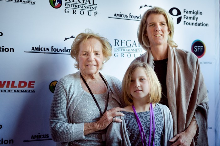 Photo by Evan Sigmund: Rory Kennedy (right) walks the Sarasota Film Festival red carpet in 2015 with mother Ethel and daughter Bridget.