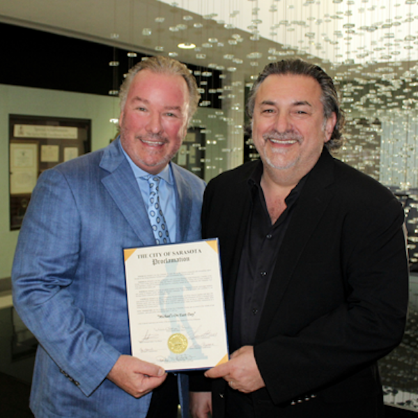 Michael's On East Co-Proprietors Michael Klauber and Philip Mancini accepted a proclamation from Mayor Willie Shaw on behalf of the City of Sarasota earlier this week during a City Commission meeting at City Hall. The proclamation commemorated the restaurateurs' three decades of success in the culinary world and commitment to the Sarasota community through their fine dining restaurant, boutique wine cellar and prominent catering division. The official 30th anniversary of the restaurant's founding is next week on April 27, 2017. The proclamation conclusion read: "Now, therefore, the City Commission of the City of Sarasota, Florida, and on behalf of the citizens of our community, takes great pride in recognizing April 17, 2017 as 'Michael's On East Day,' a day of special importance and worthy of the recognition of the citizens of the city of Sarasota."