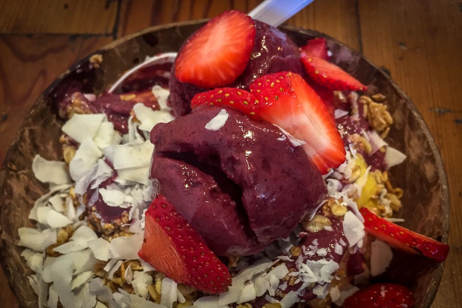 Take a walk on the wild side and discover the refreshing Tropical Bowl from the Green Zebra Cafe. Adding a colorful flair to one’s breakfast, this bowl takes a base of blended acai berries and tops it with blueberries, strawberries, bananas and pineapple, creating a juicy center to be sandwiched between crunchy granola and a light sprinkling of delicate, shredded coconut. The crisp and crumbly granola soaks up all the fruity flavors, balancing the sweet and the tang, and adding some textural variety to the experience. The pineapple and coconut highlight that beachy feel and island vibes, taking one’s mouth on vacation.