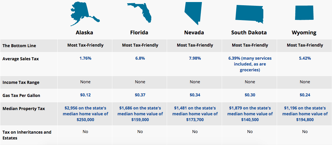 Indeed, all five states topping the Kiplinger listings charge no income tax. They also don’t charge any inheritance or estate taxes. And Florida also boasts a lower median property tax than even some states ranked as more tax-friendly.