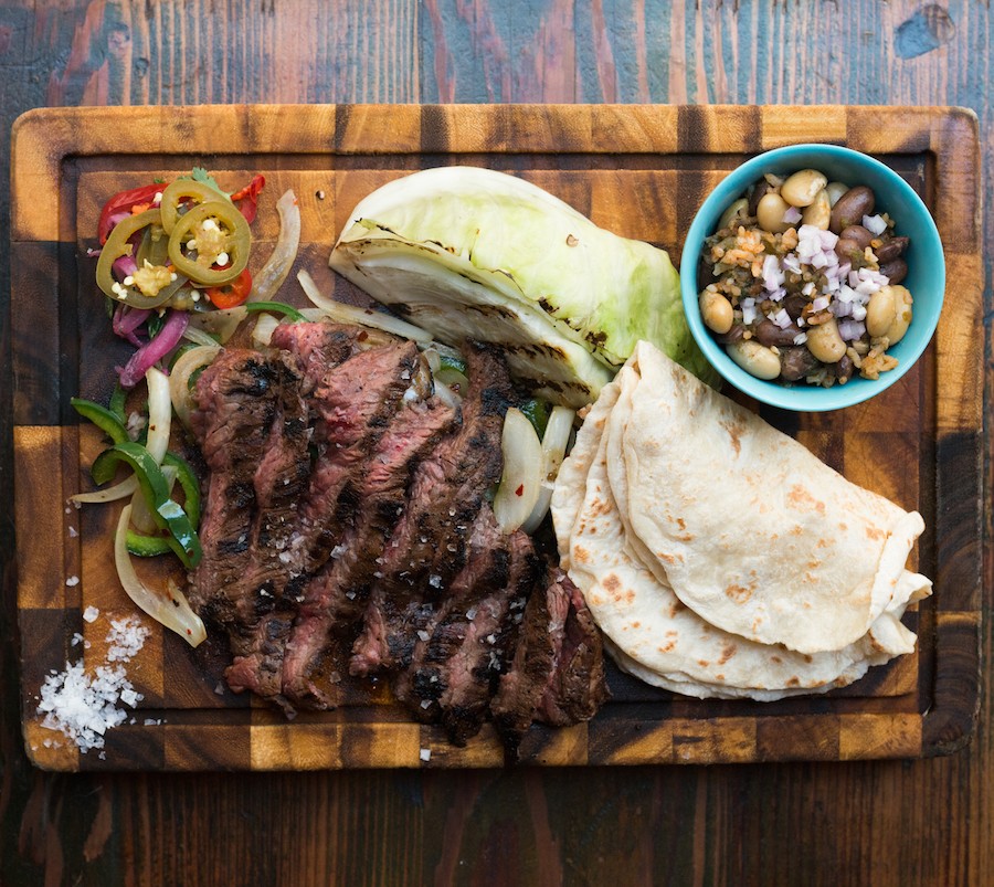 Beef Fajitas By Chef Josef Centeno from Bäco Mercat & Bar Amá: This dish goes back to Josef’s childhood, reflecting the multicultural flavors of Tex-Mex cuisine. Fajitas, a beloved big Texan meal, re-cultured to star fine cuts of steak with sautéed vegetables, grilled cabbage wedges and warmed flour tortillas. Usually served on sizzling hot skillets, this is Josef’s L.A. version of the dish, served on a regular plate—no pyrotechnics here. Accompany with a bowl of Mexican rice and beans, and you’ve got yourself a caliente dinner for two!