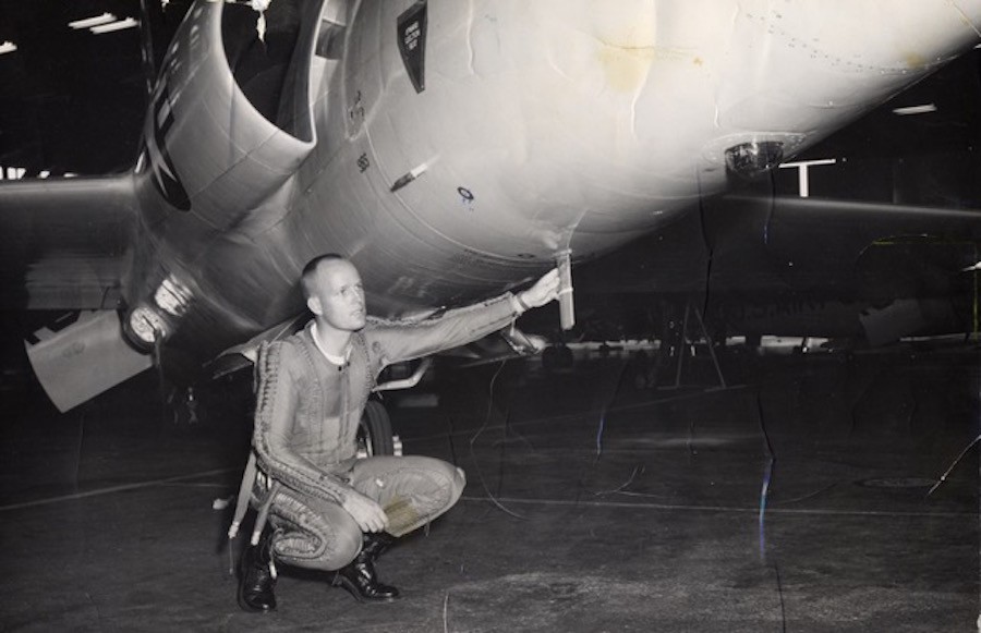 Pictured: Pilot Jerry McIlmoyle with his U-2 spyplane in 1963. Photo courtesy of Michael J. Tougias.