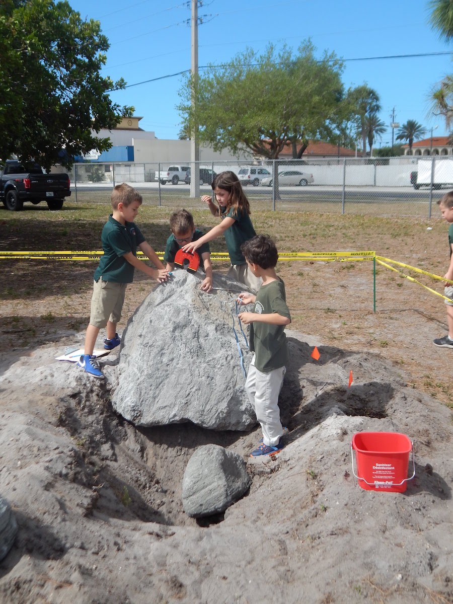 Pictured: Student scientists clamber over the intruding meteor in a quest for answers. Photo courtesy of Education Foundation of Sarasota County.