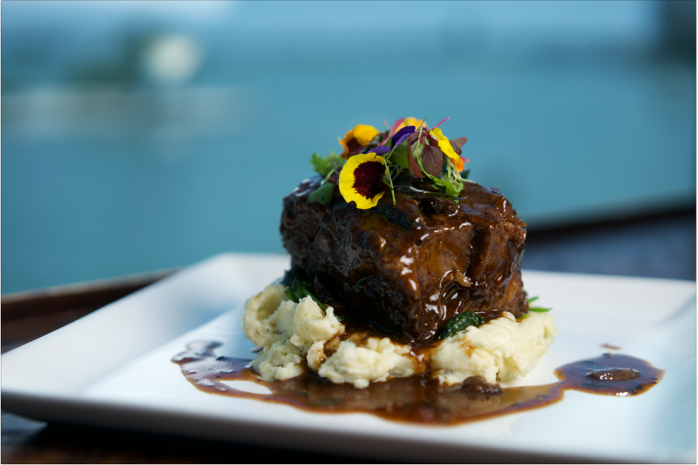 This generous portion of Braised Short Ribs remains an underlined feature on the menu at Marina Jack’s scenic Dining Room. Chef Dabney ultimately decided on a boneless short rib dish so guests would get more bang for their buck, and the presentation itself proves remarkably eloquent compared to the bony alternative. Chef Dabney sears the meat from the chuck before slow-braising it for 6-8 hours in a Wild Mushroom Petite Sirah Demi-Glace until fork tender. Once cooked to perfection, the hefty 8 oz stack of Halperns Aged Beef gets served royally atop sautéed spinach and garlic, as well as smashed truffle and Yukon gold potatoes. If rice pilaf, steamed asparagus or sautéed broccolini sound more appealing, side selections can be easily traded to maximise that ‘Mmm’ moment! Do not let yourself glance over a savory signature entree—this big hunk of short rib is awaiting at your next waterfront supper.