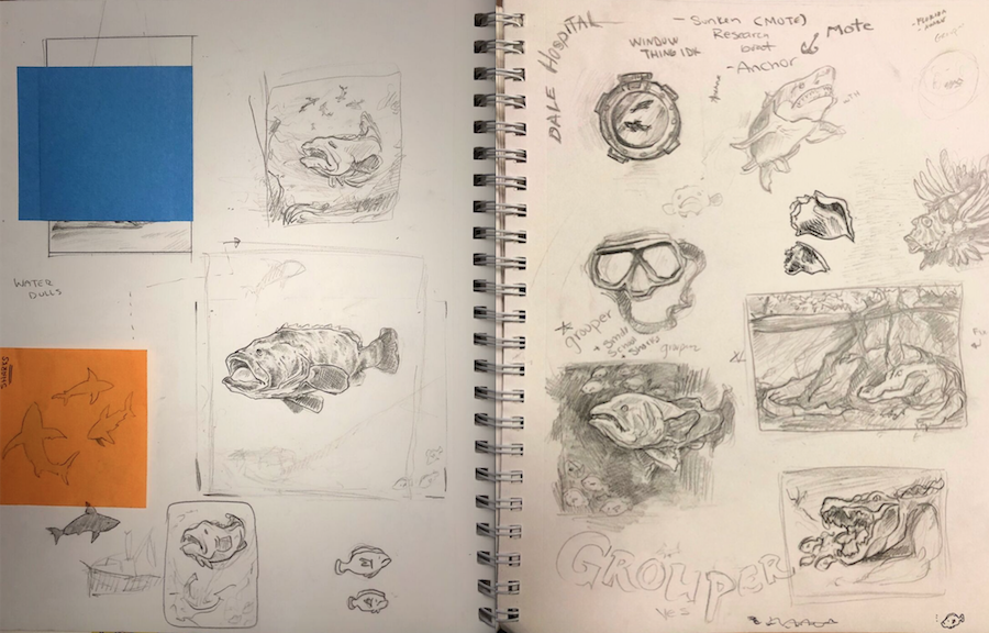 Pictured: Sketches and brainstorming from Braden River High School artists. Photos courtesy of Bluewater Gear.
